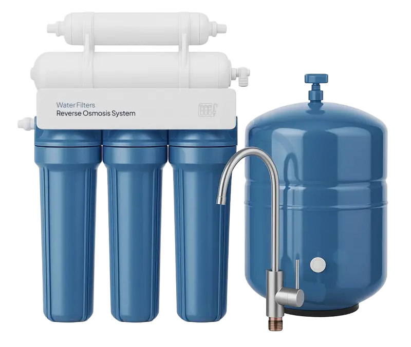 مياه نقية خالية من الملوثات والمواد الكيميائية بفضل فلاتر التناضح العكسي المتطورة.